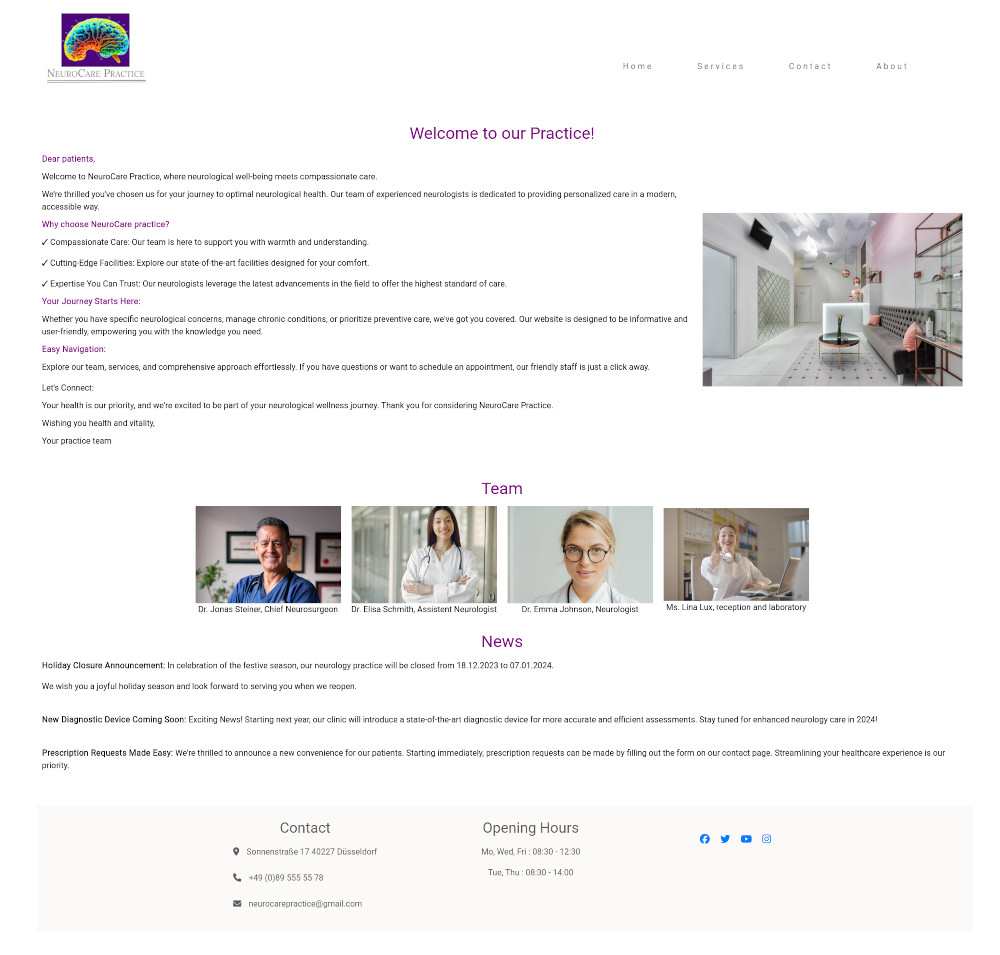 A website dedicated to providing a comprehensive online platform for a fictional neurology clinic.